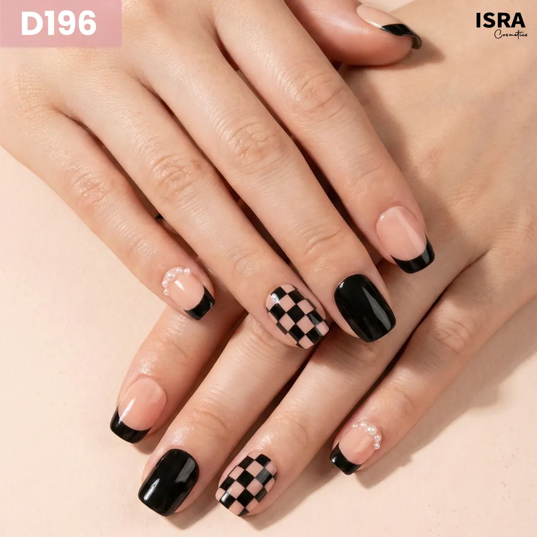 Black and Taupe Pearls D196 blends glossy black accents with soft taupe tones, finished with delicate pearl details for a luxe touch.