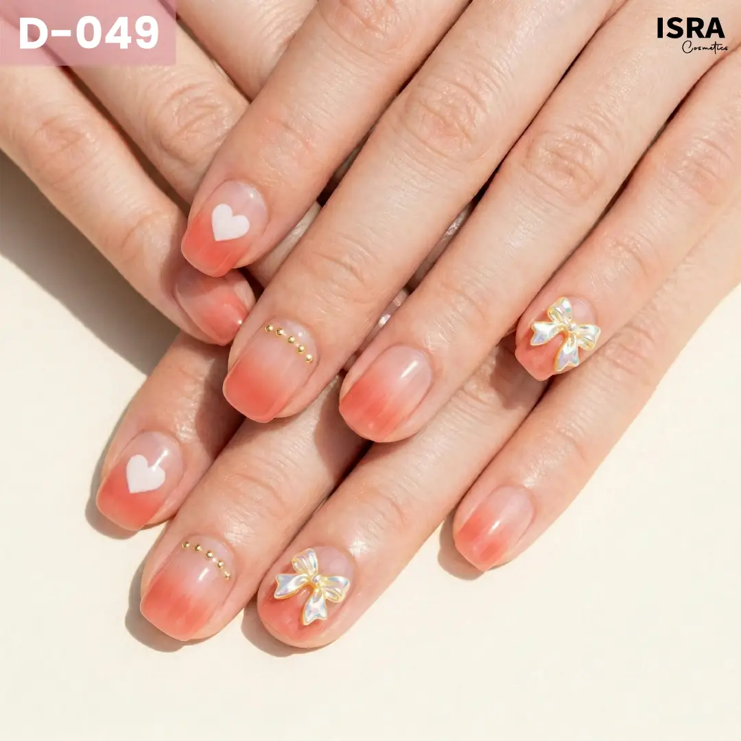 Peach Bow Hearts D049 feels fresh and romantic, perfect for everyday elegance or a cute special occasion look.