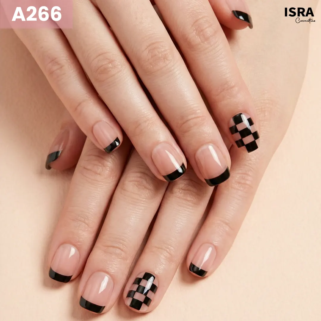 Rosy Brown Black Tip A266 features a soft rosy nude base paired with sleek black tips and a chic check accent for added flair.