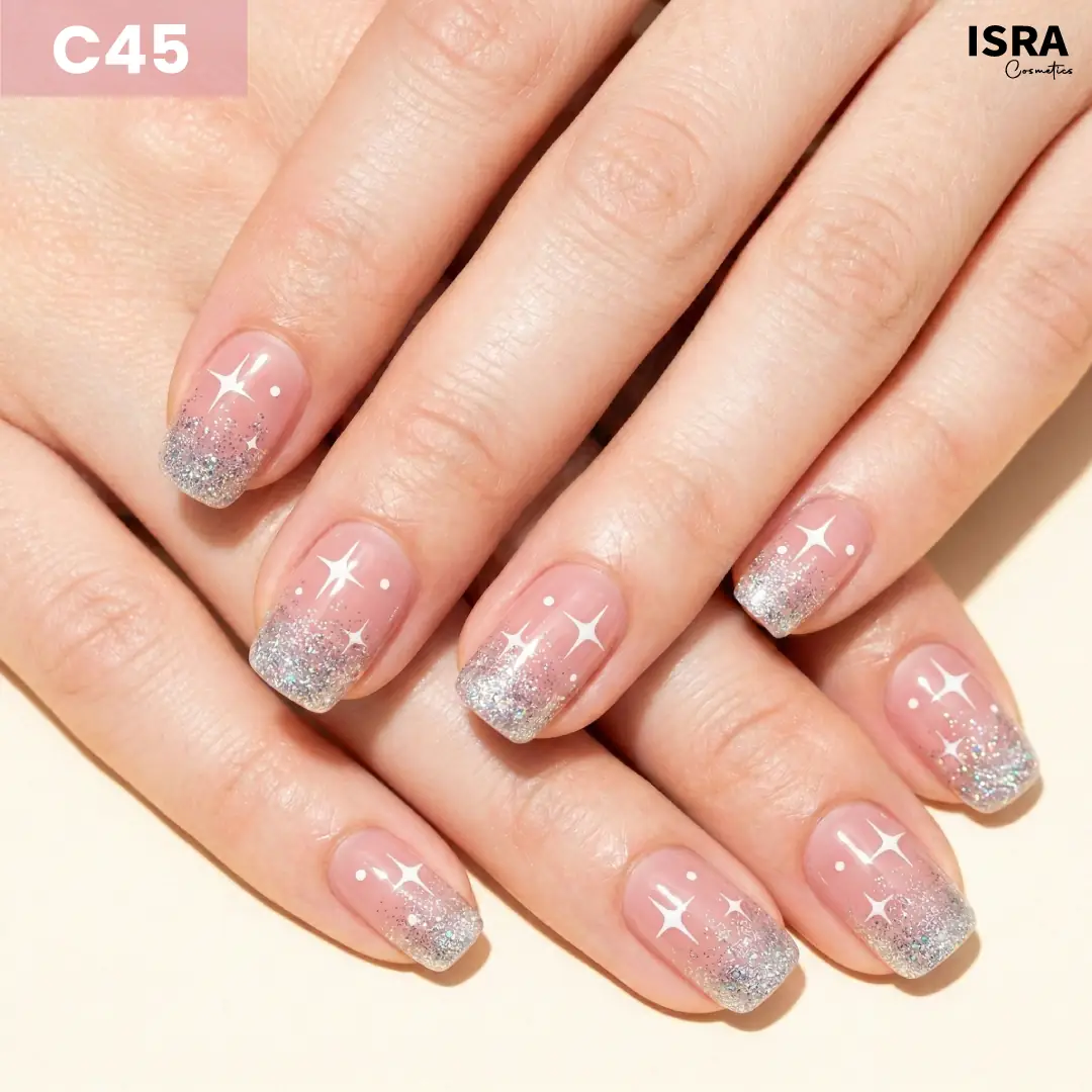 Star Glitter C45 nails give a clean, polished look with subtle sparkle. No salon. No effort. Just press on and shine.